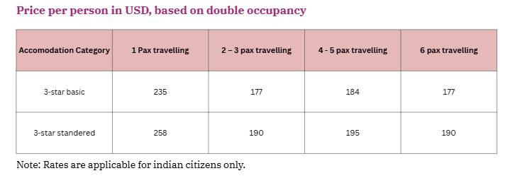 Then you’re free until being transferred to airport by private car and guide for your departure flight.