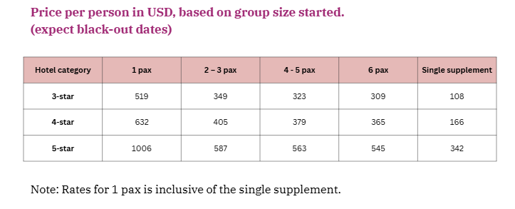 Free at leisure until transfer with driver (no guide) to the airport for your departure flight.