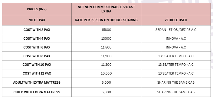 No Vehicle service, for Banganga or Helipad transfers please coordinate with hotel reception.
