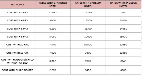 Daily one 500ml water bottle in Vehicle during sightseeing.