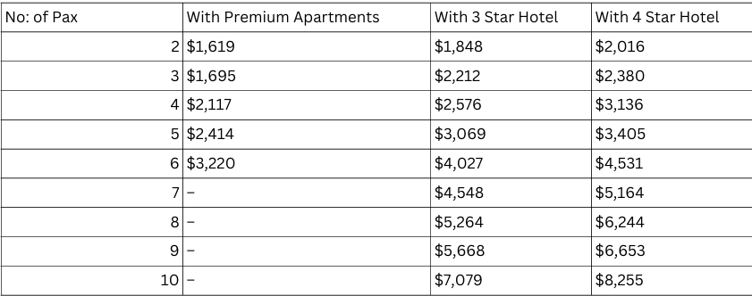 Expenses of personal nature Flight tickets Food Entry tickets not mentioned in inclusion Overseas travel insurance Anything not mentioned in inclusion