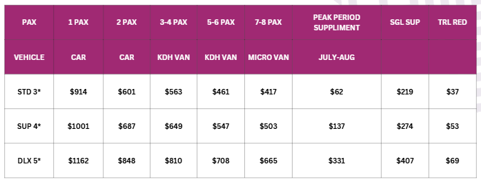 o After landing, you will be greeted by your driver/guide. Make sure to have your travel