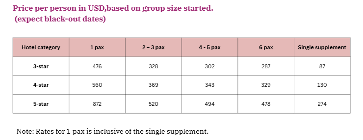 Breakfast at hotel. Morning at leisure. Lunch on your own.